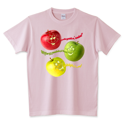 楽しそうに雑談しているリンゴたちのTシャツです!
