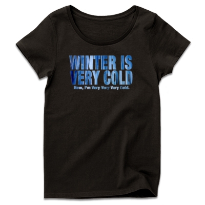 「今、私はとてもとてもとても寒いです」つまりこのTシャツは、クソ寒い真冬でも、Tシャツ一枚姿で
