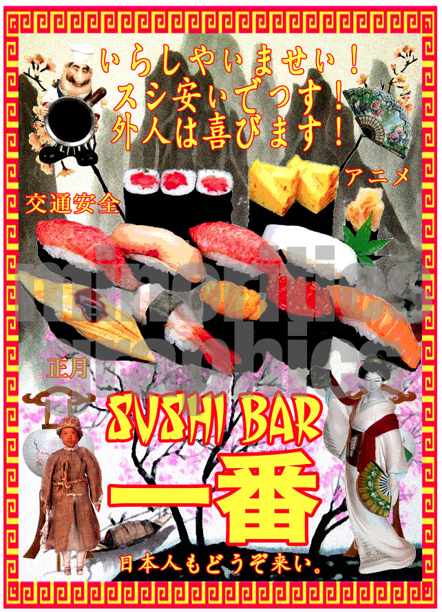 経営する怪しいスシバーの広告を作ると、一体