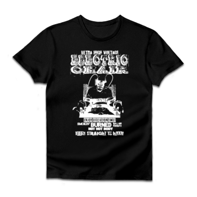 以前、新作のコーナーでも紹介しましたが、電気イス処刑のデザインTシャツです。